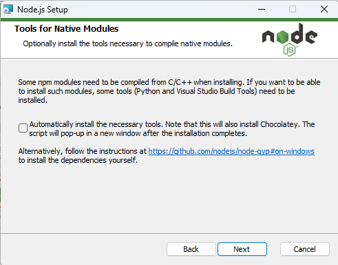 필수적인 건 아니지만 가끔 "Chocolatey가 없어서 실행이 안됩니다."하는 경고를 봤기 때문에 체크를 하고 넘어갑니다.