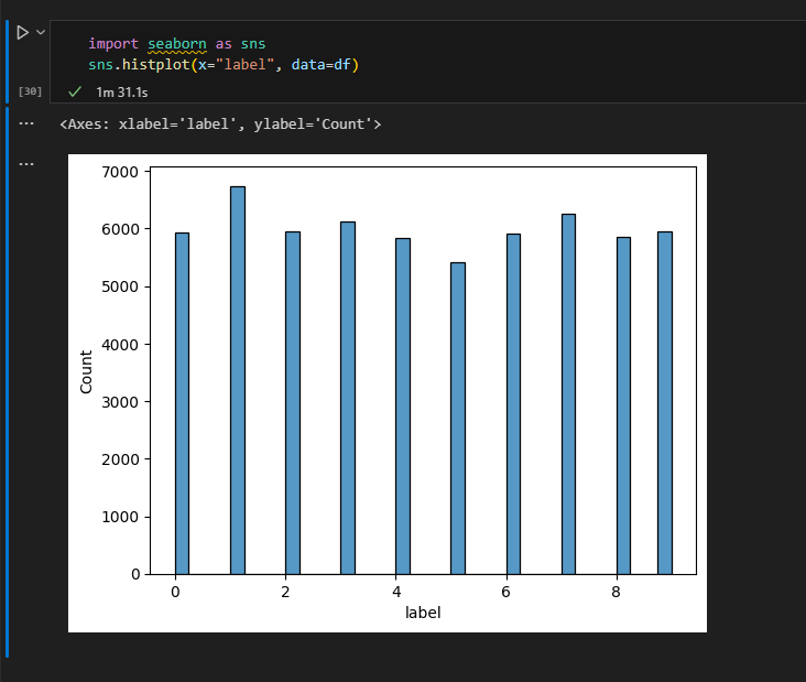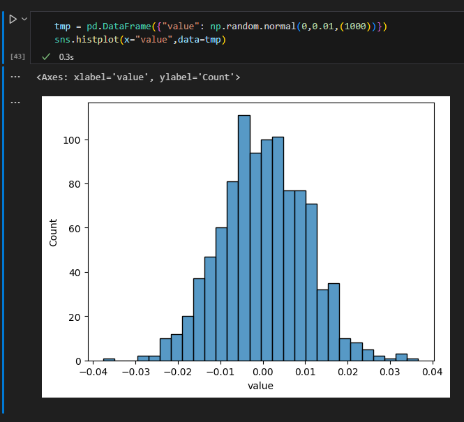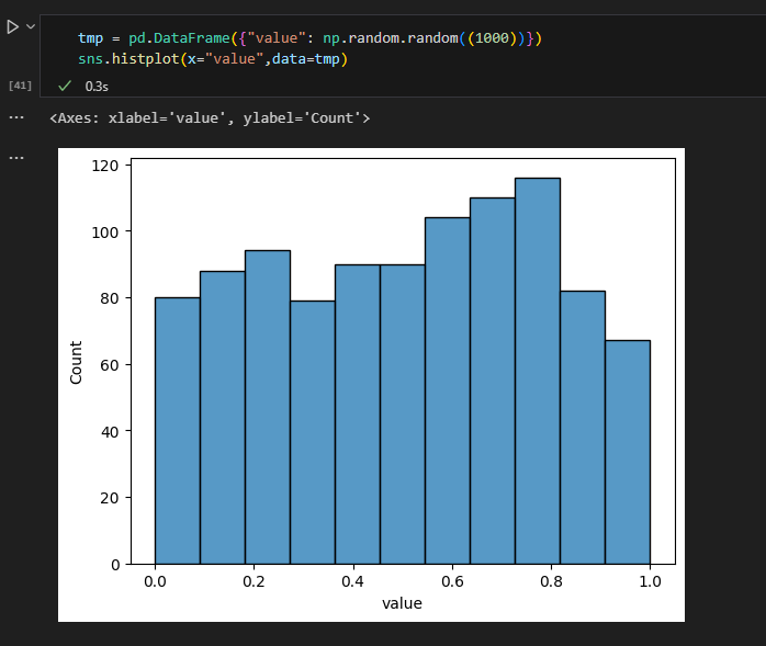 pip install seaborn으로 seaborn을 설치하고 histplot으로 막대그래프를 그려봅니다.