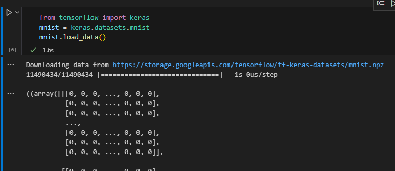 tensorflow의 keras안에 mnist 데이터가 있습니다. 해당 데이터를 가져옵니다.