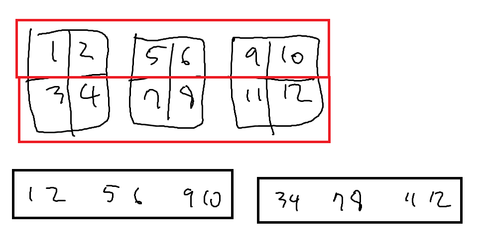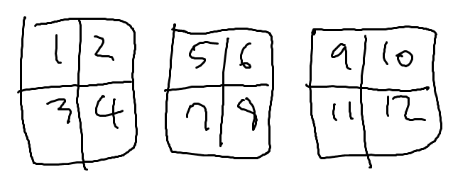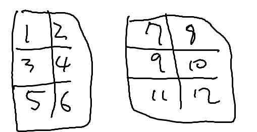 [[[1,2],[3,4]] , [[5,6],[7,8]] , [[9,10],[11,12]]] 이렇게 저장되어 있습니다.