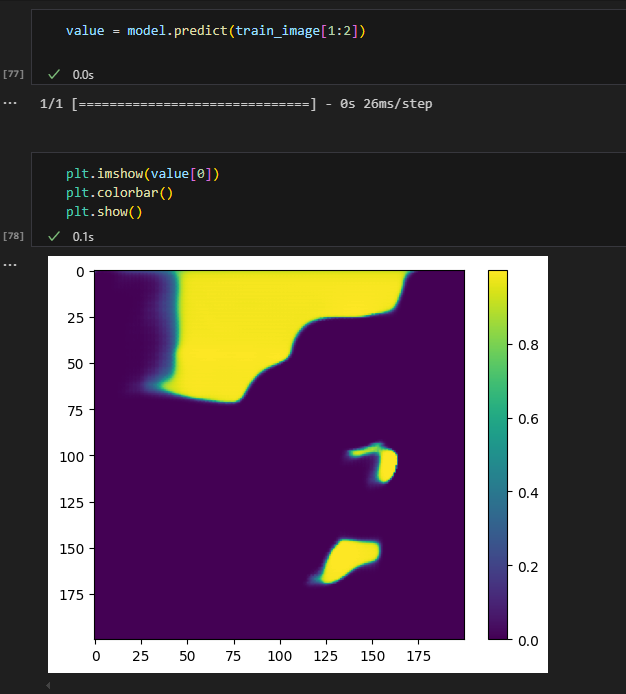 처음 팩셀은 200*200이고 이전의 U-net에서 숫자와 층의 개수만 변화를 주었습니다. 그리고 마지막에는 sigmoid를 주었습니다.