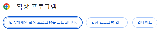 왼쪽 위에 있는 확장프로그램 로드 버튼을 누르고 프로젝트 폴더를 엽니다.