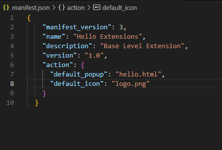 이제 프로젝트 폴더에 logo.png를 넣고 manifest.json 파일을 만들고 다음과 같이 입력해 줍니다.