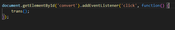 onclick안에 trans(0라는 스크립트가 있기 때문입니다. onclick을 없애고 addEventListener로 해결합시다.