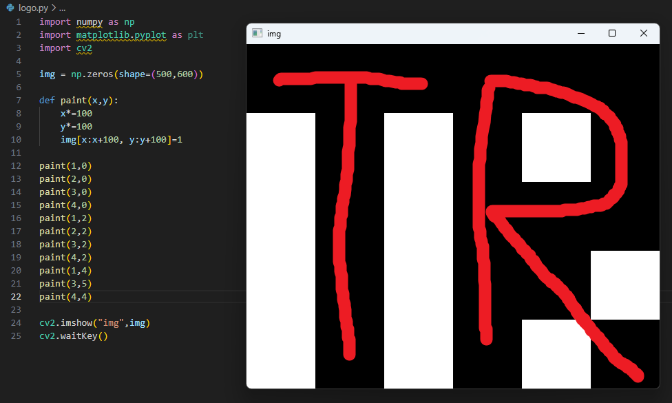 python logo.py로 실행하면 이런 화면이 나옵니다. 저는 흰 바탕에 검은 글씨로 TR이라고 쓸 것입니다.