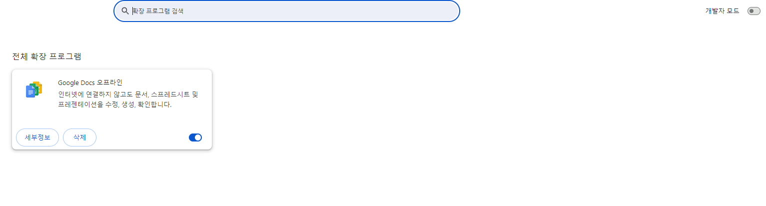 이제 크롬 새 탭에 chrome://extensions 를 입력해 줍니다. 오른쪽 위 개발자 모드를 열어줍니다.