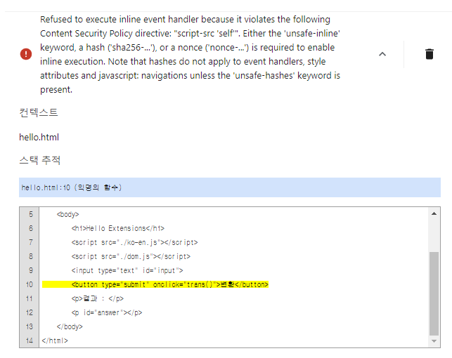 성공적으로 오류가 나는 것을 확인할 수 있습니다. 오 버튼을 누르면 에러를 볼 수 있습니다.