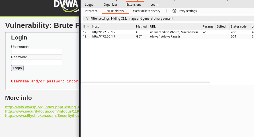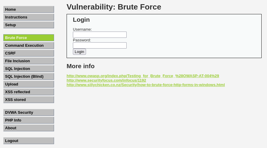dvwa를 켜고 brute force 탭으로 들어갑니다.