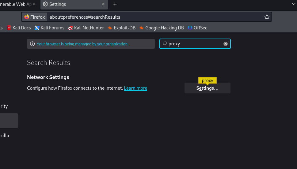 이러면 1234포트에 프록시를 여는 데까지 성공했습니다. 파이어 폭스에서 보내는 정보가 프록시를 거쳐가도록 설정해 줍니다. 우측 메뉴를 누르고 setting으로 이동합니다.