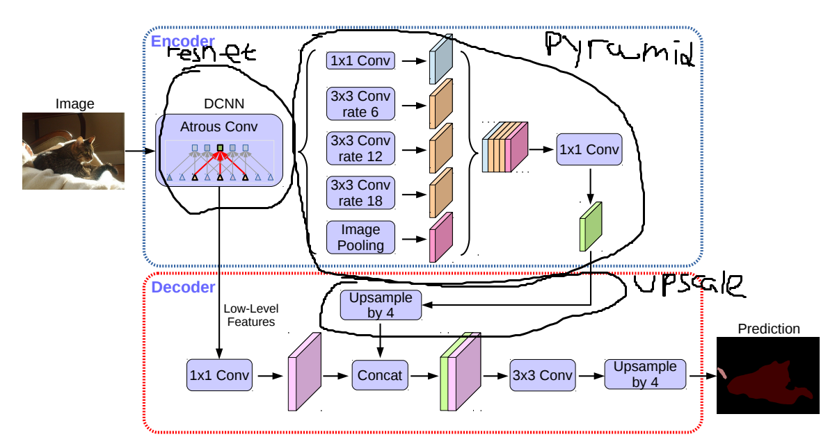 deepLabV3Plus는 이전 논문들과 다르게 모델 구조가 살짝 복잡합니다. 그래서 모델을 구현하는 것에 중점을 맞출 것입니다.