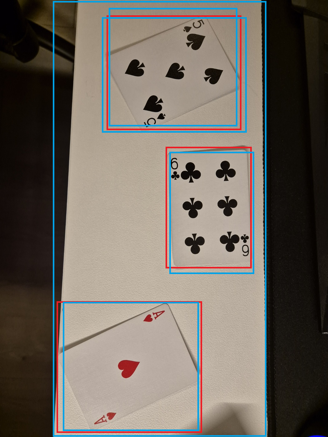 selective search가 어떻게 되냐에 따라 다르지만 한 객체에 여러 개의 사각형이 있을 수 있습니다.(제일 위 카드)