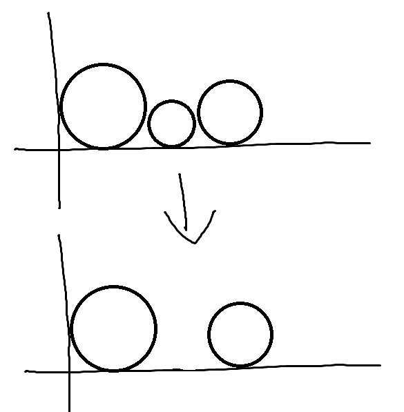 만약 지금 비교하는 파이프의 반지름이 $r$보다 작거나 같다면 해당 파이프는 이 뒤에 있는 파이프에 영향을 미치지 않으니 제거해도 됩니다.