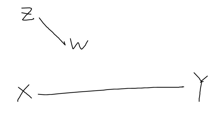 만약 CCW($XYZ$) * CCW($XYW$)가 양수면 $\overline{XY}$의 한쪽 면에 $Z, W$가 있다는 뜻이므로 절대 교차하지 않습니다. CCW($ZWX$) * CCW($ZWY$)가 양수일 때도 마찬가지입니다.