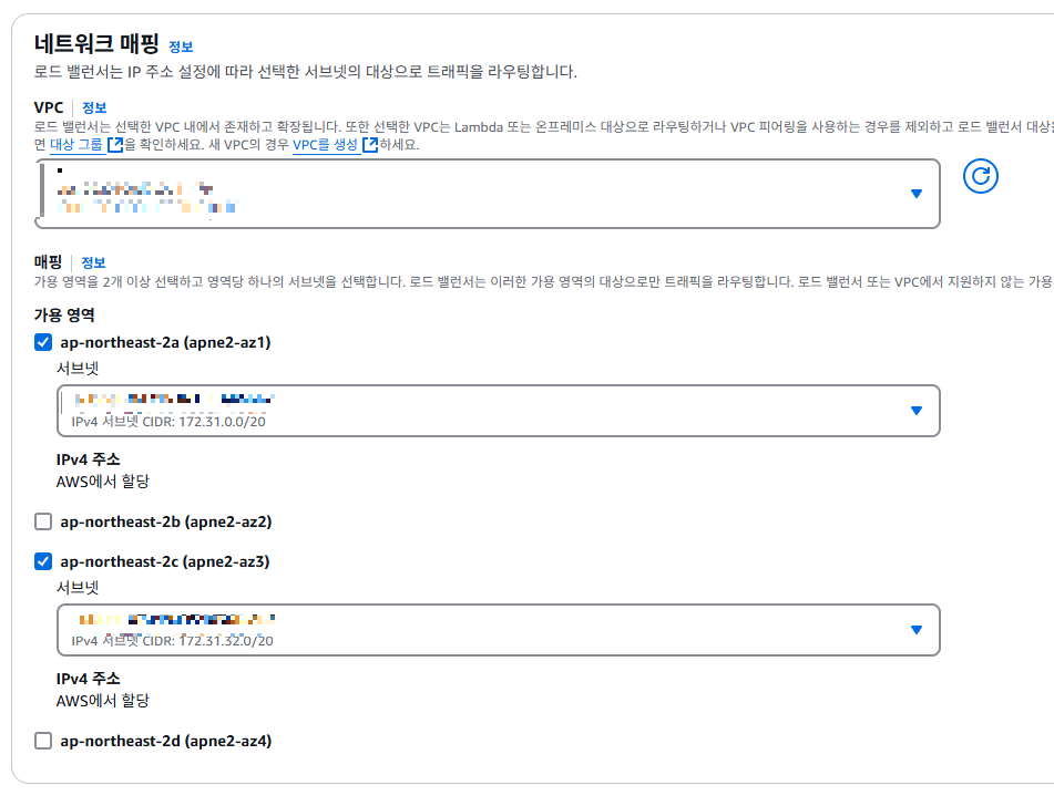 네트워크 매핑에서는 원하는 vpc를 선택합니다.