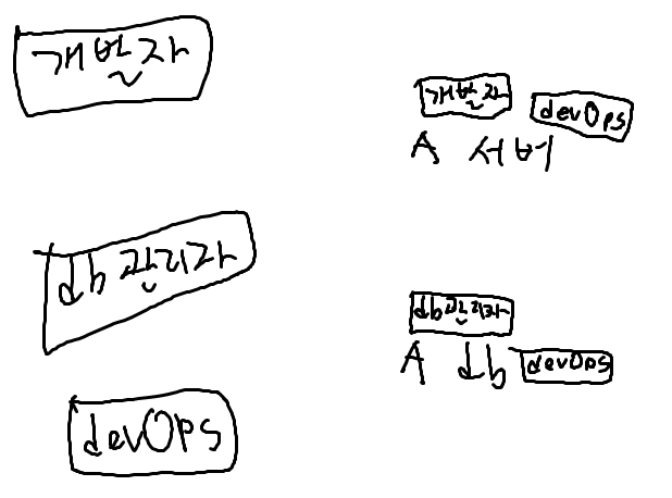 만약 이 회사에서 B라는 신규 서비스를 출시한다면 어떻게 될까요? 각각의 역할에 리소스를 할당해 주어야 합니다. 이 경우는 역할이 3개밖에 안되지만 실제 회사에서는 역할이 정말 많을 것이고 서비스를 만들 때 마다 모든 역할에 서비스를 할당해 주는 불편함이 있을 것입니다.
