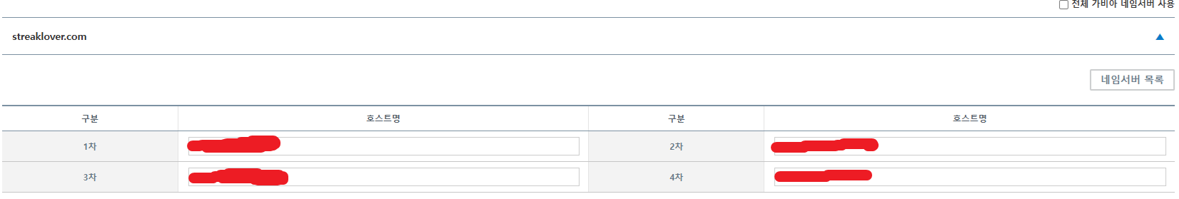아래와 같이 생성이 됩니다. 오른쪽에 있는 4개의 주소를 가비아에 등록을 할 것입니다.