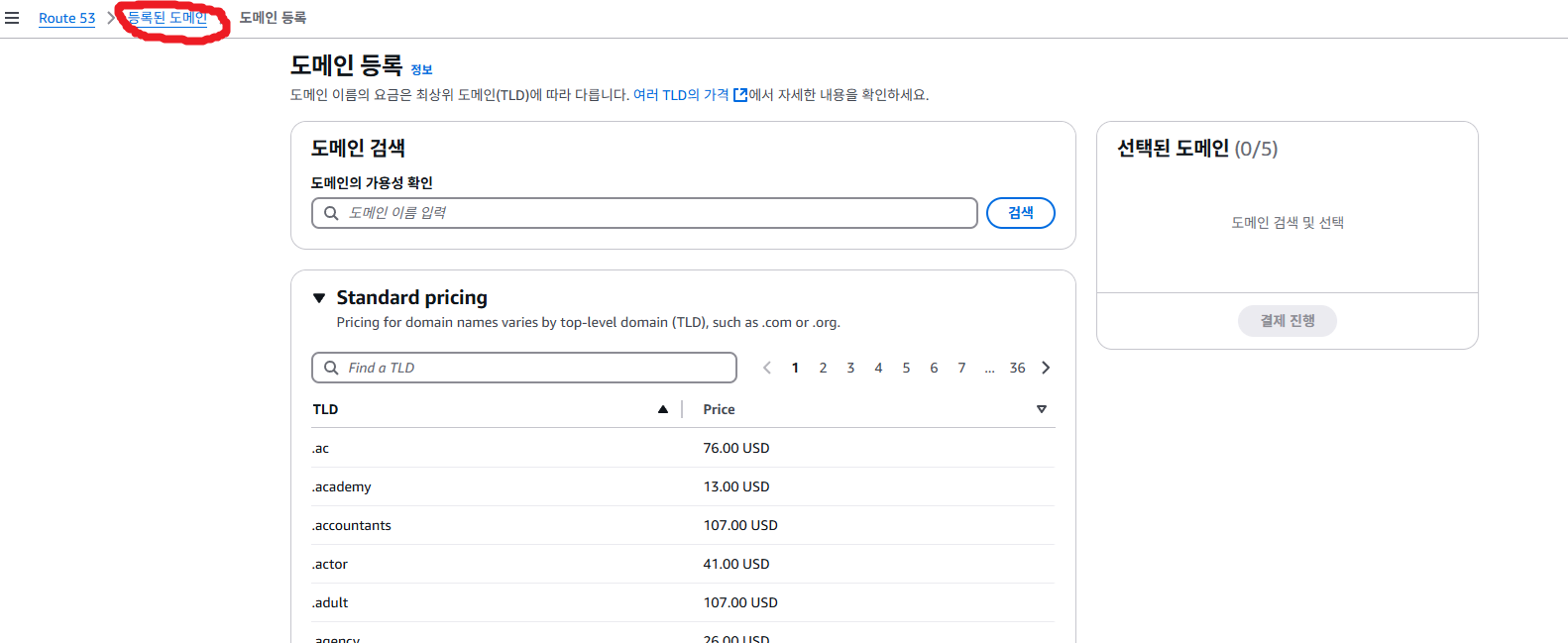 도메인 등록하는 창이 나오는데 이미 도메인을 구매했으니 진행하지 않을 것입니다. 화면 왼쪽 위 "등록된 도메인"을 누릅니다.