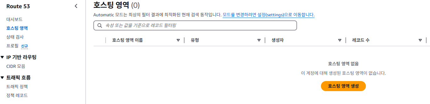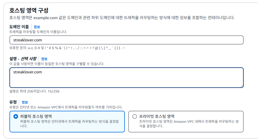 "호스팅 영역" - "호스팅 영역 생성"을 누릅니다.