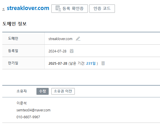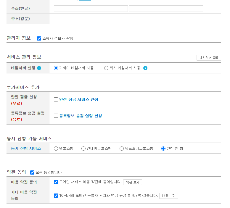 aws에서 구매할 수도 있지만 저는 가비아에서 구매했습니다. 가비아로 이동해서 구매를 진행해 줍니다. 등록하면 아래와 같이 나옵니다.