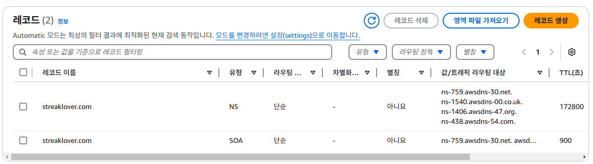 이제 ec2의 ip와 연결해 보겠습니다. 레코드 생성을 누릅니다.