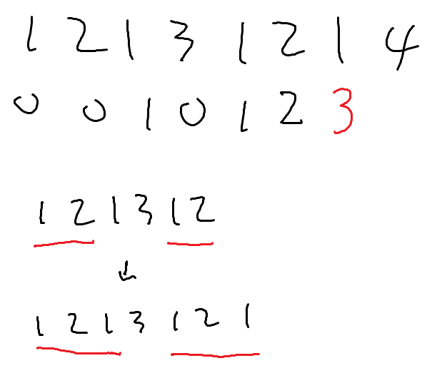 이때, 1213121의 F값은 3입니다. 즉, 처음부터 볼 필요 없이 3번째부터 진행해도 된다는 뜻입니다.