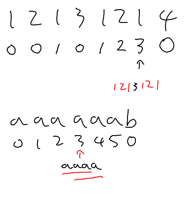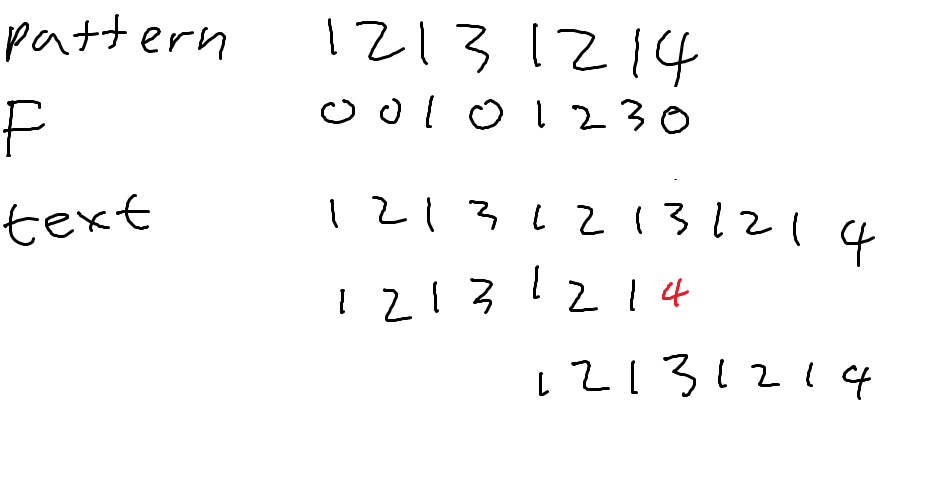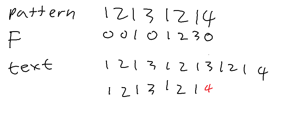 로 하겠습니다. 아래는 12131214와 aaaaaab의 F입니다. 각 pattern 밑에 있는 것이 F입니다.