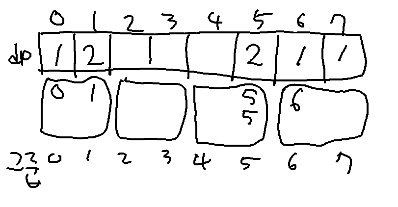 이것을 그룹 2-3,4-5,6-7에 대해서도 해주면 2|3=3, 4|5=5,6|7=7이므로 dp[3], dp[5], dp[7]에 각각 dp[2], dp[4], dp[6]을 더해줍니다.