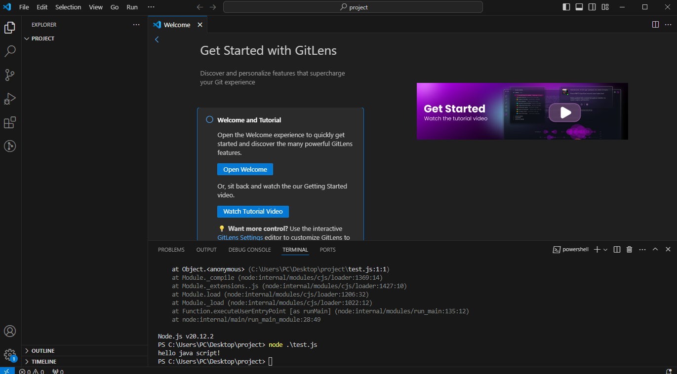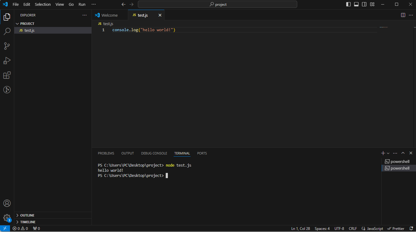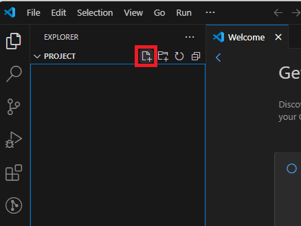 왼쪽 탭에서 새 파일을 만들고 test.js로 이름을 바꿉니다.