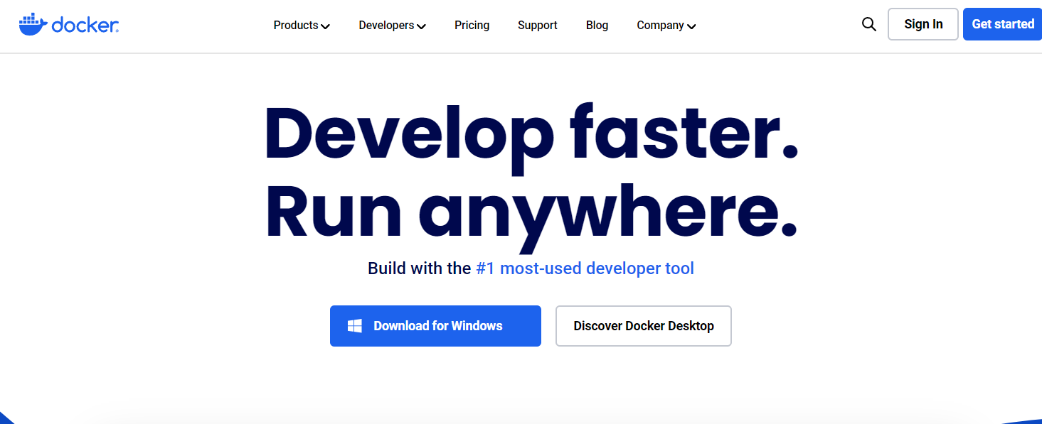 우선은 docker를 설치해 줍니다. mysql을 도커를 이용해 돌릴 것이기 때문이죠. docker 설치 사이트(https://www.docker.com/)로 가서 설치합니다.