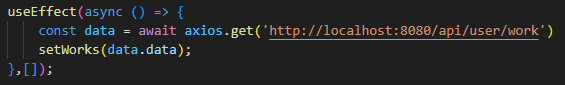 처음 랜더링 될 때 + setWorks로 값이 할당될 때 2번 호출됩니다.