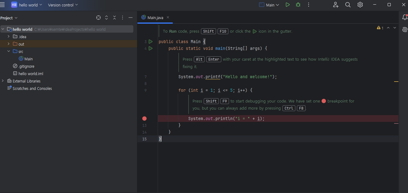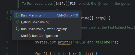 main 옆에 있는 화살표를 누르고 run을 해줍니다.