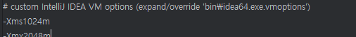 최소와 최대 메모리 사용량을 조절해 줍니다. 저는 1G, 2G로 설정했습니다.