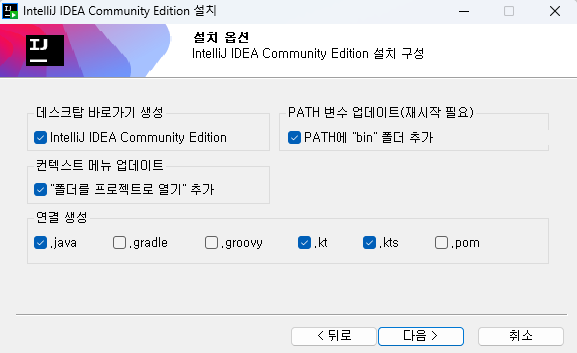 설치 파일을 시작하고 나오는 창에서 아래와 같이 선택해 줍니다.