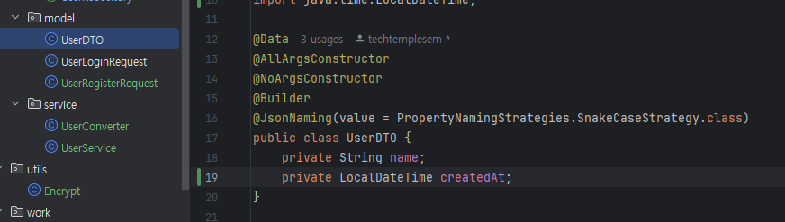 DTO(Data Transfer Object) 클래스에 넘겨줄 정보를 넣어둡니다.