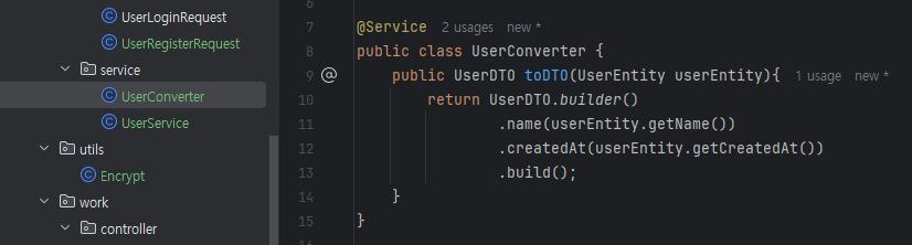 converter 클래스를 만들어 줍니다. 이 클래스에서 entity <-> DTO 변환을 해줍니다.