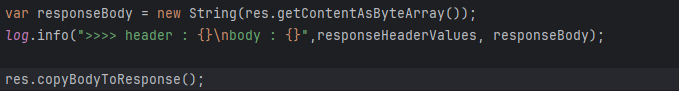 응받을 한번 읽으면 정보가 사라지게 됩니다. 그럼 실제로 클라이언트는 빈 정보를 받게 됩니다. copyBodyToResponse로 사라진 정보를 복구해 줍니다.