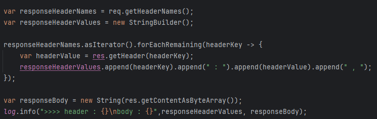 req.getContentAsByteArray로는 body의 정보를 알 수 있습니다.