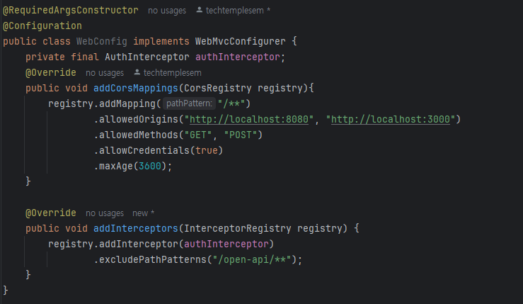 addCorsMappings는 다른 문제(https://codestudycafe.tistory.com/123)를 해결하기 위한 것이니 넘어갑시다.