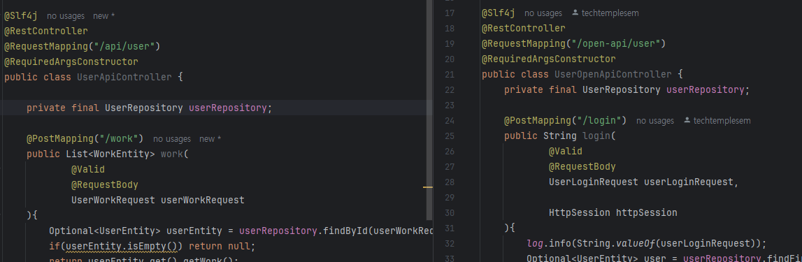 저는 open-api로 login을, api로 work를 만들었습니다. 이것이 무엇을 하는지는 크게 중요하지 않습니다.