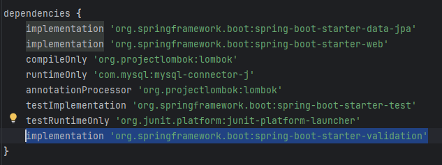만약 NotBlank에서 에러가 발생하면 build.gradle에 마지막 문구를 추가해 줍니다.