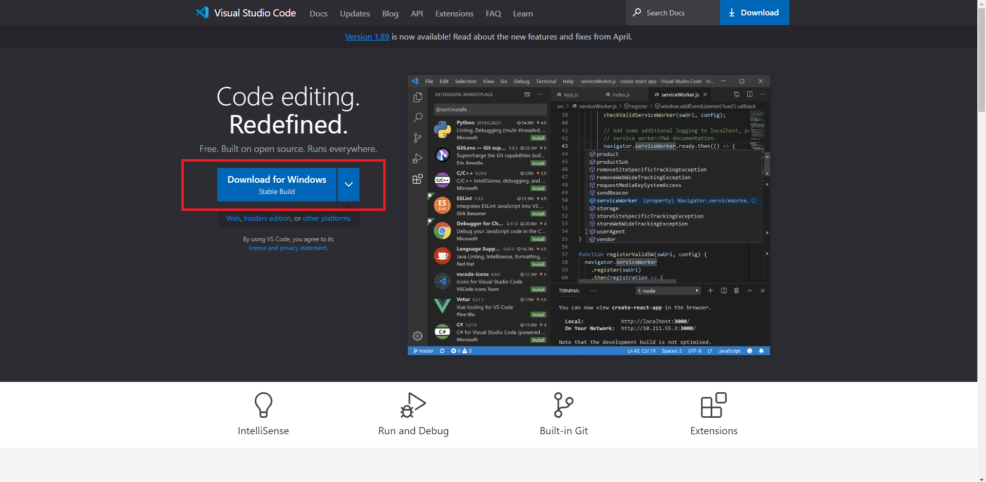 우선 vscode공식 홈페이지(https://code.visualstudio.com/)로 갑니다.운영체제에 맞춰서 다운로드 해 줍니다.