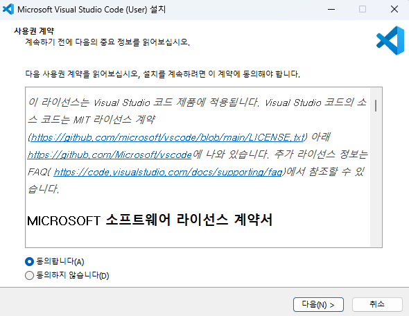 동의하겠냐고 물으면 동의하면 되고 어디에 설치하겠냐, 바로가기 만들겠냐고 하면 다음을 누르면 됩니다.
