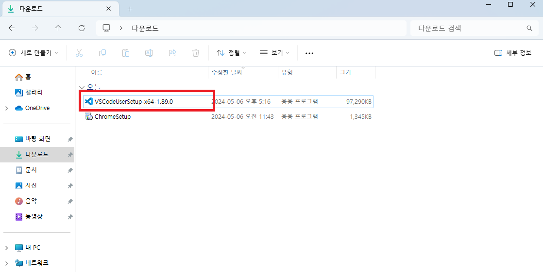 다운로드된 파일을 실행합니다.
