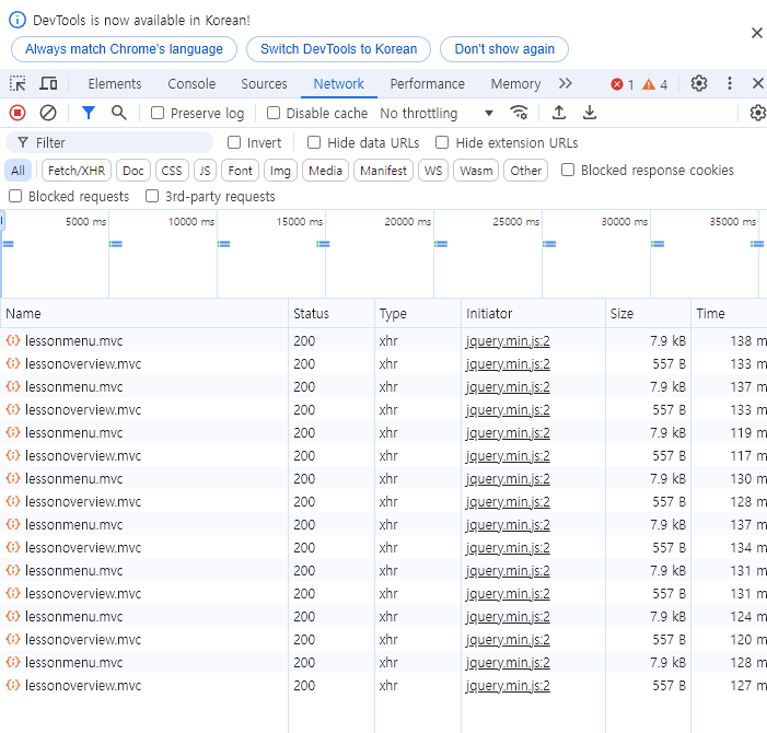 f12나 ctrl + shift + i를 눌러 개발자 도구를 열어봅시다.여기의 네트워크 탭에서 어떤 통신이 오고갔는지 확인할 수 있습니다.