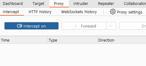 다시 돌아가서 proxy - intercapt에서 intercept를 on으로 바꿔줍니다.