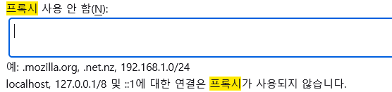 저는 윈도우에 firefox에서 해당 기능을 사용합니다. 이때, 이전처럼 설정을 할 때 localhost는 사용이 안된다는 것을 볼 수 있습니다.