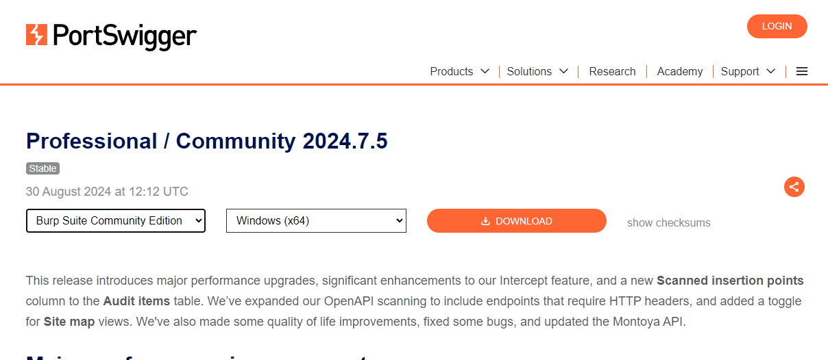 burp suite(https://portswigger.net/burp/communitydownload)로 가서 운영체제에 맞는 burp suite를 설치합니다. 저는 community edition으로 설치했습니다. 이 전에(https://codestudycafe.tistory.com/80) 했던 대로 proxy를 세팅해 줍니다. 이때 설정한 proxy가 여기서 말한 proxy입니다.